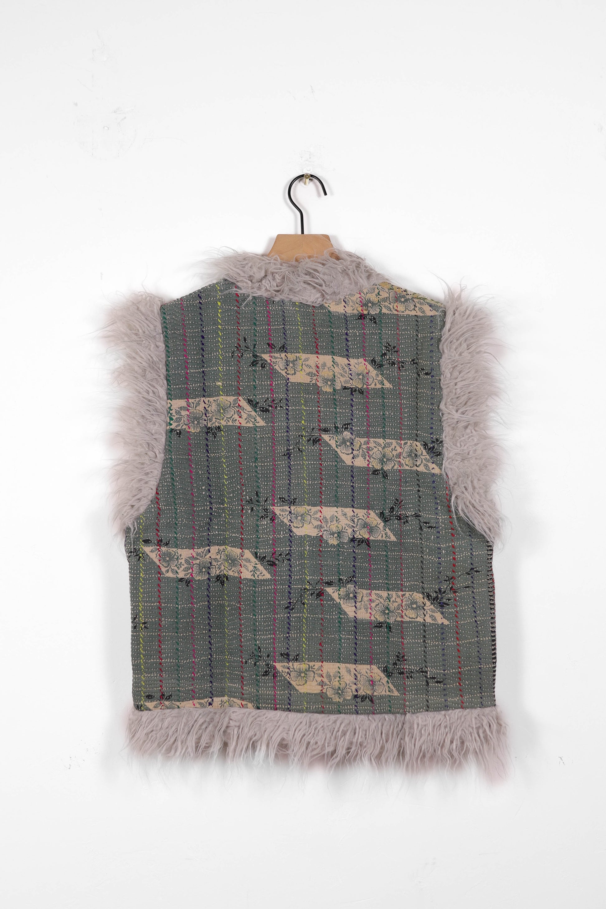 Every coat is one of a kind, made from a vintage kantha quilt. Layers of fabric bound by a hand sewn running stitch - your piece may have markings or worn areas that we find make our coats even more storied and unique.