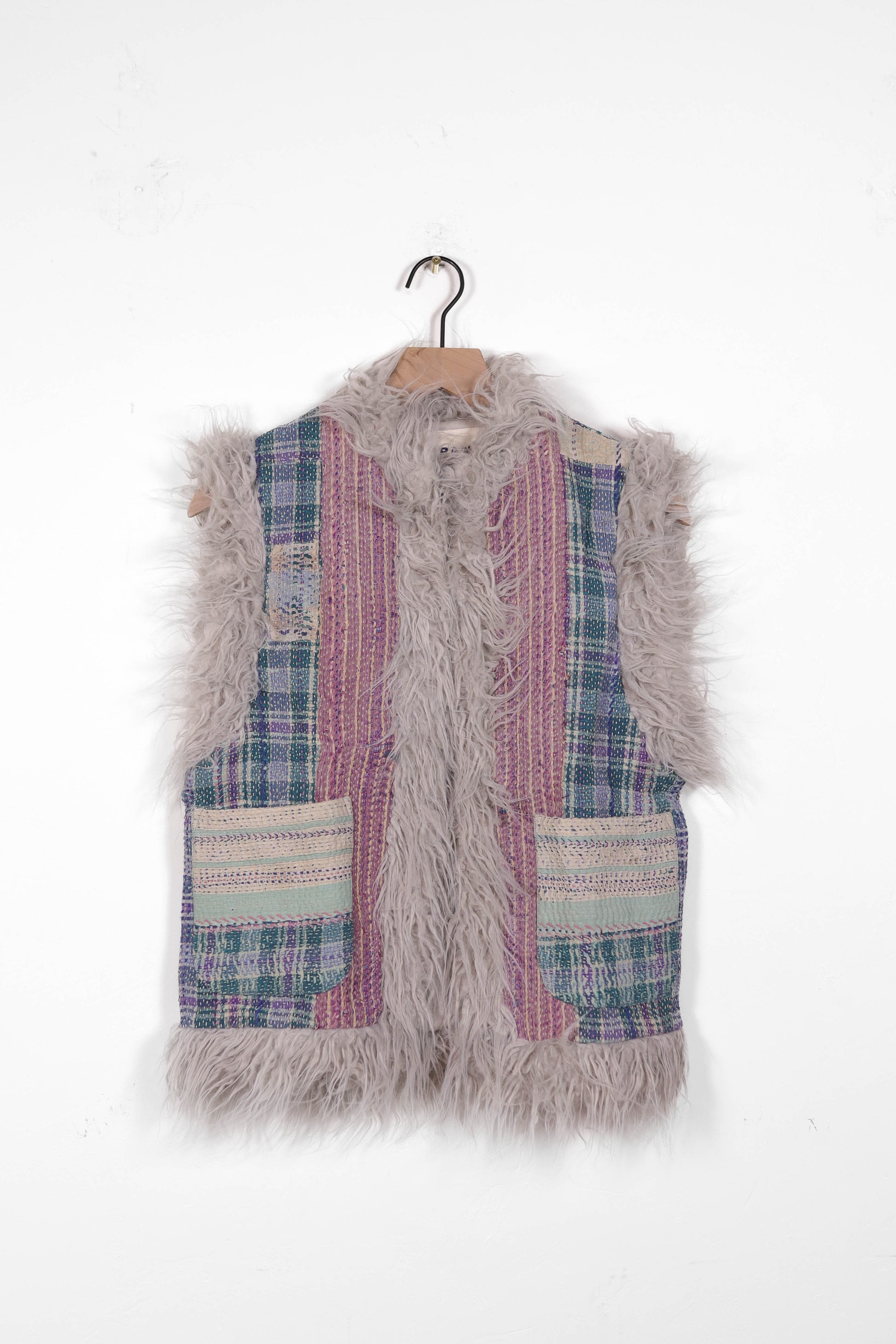 Every coat is one of a kind, made from a vintage kantha quilt. Layers of fabric bound by a hand sewn running stitch - your piece may have markings or worn areas that we find make our coats even more storied and unique.