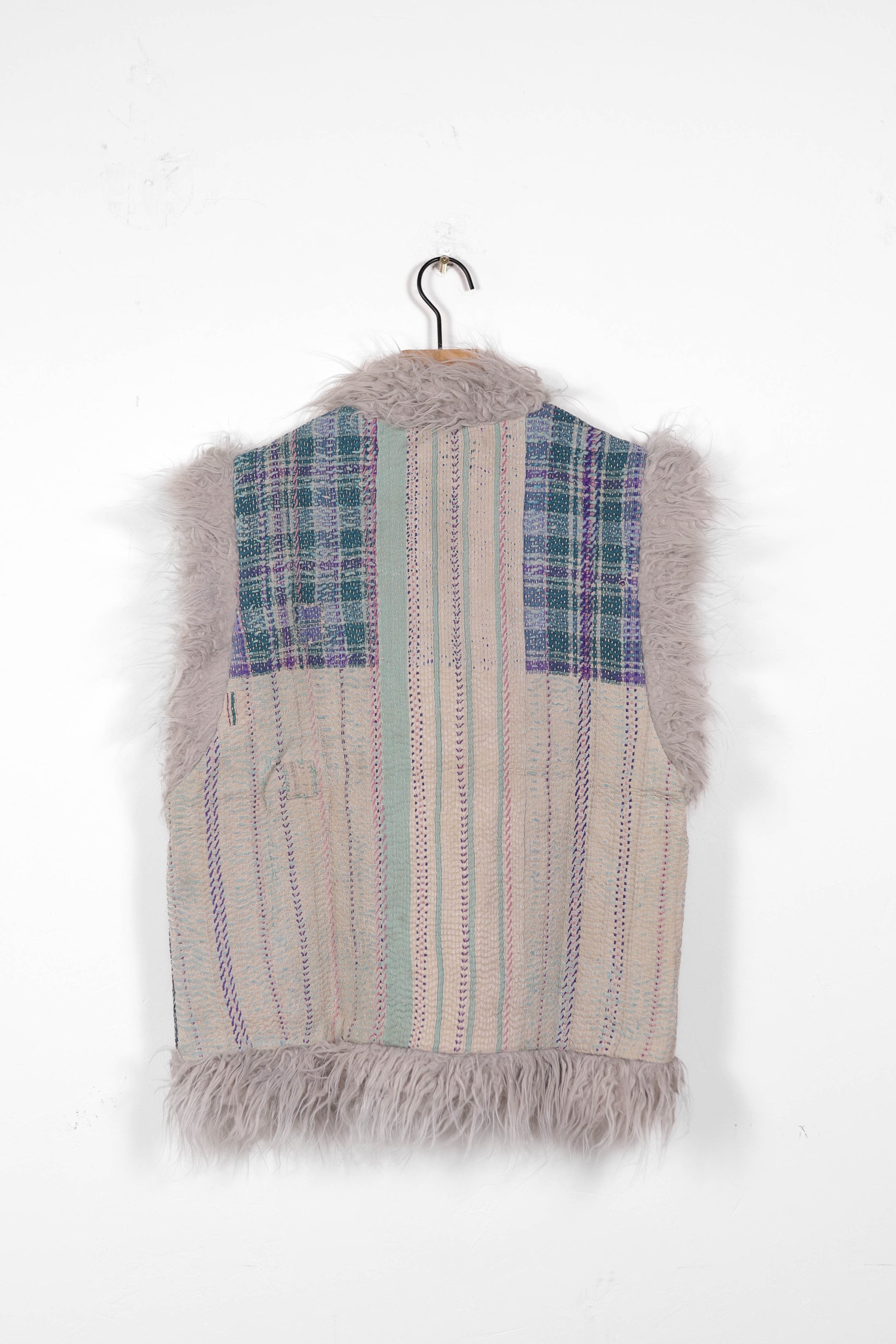 Every coat is one of a kind, made from a vintage kantha quilt. Layers of fabric bound by a hand sewn running stitch - your piece may have markings or worn areas that we find make our coats even more storied and unique.
